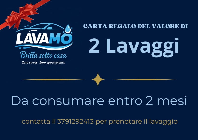 La nostra carta regalo è il regalo perfetto per ogni occasione. Permetti ai tuoi cari di scegliere il servizio Lavamò che preferiscono e godere di un'esperienza unica. Ideale per compleanni, anniversari, o semplicemente per fare un regalo speciale.